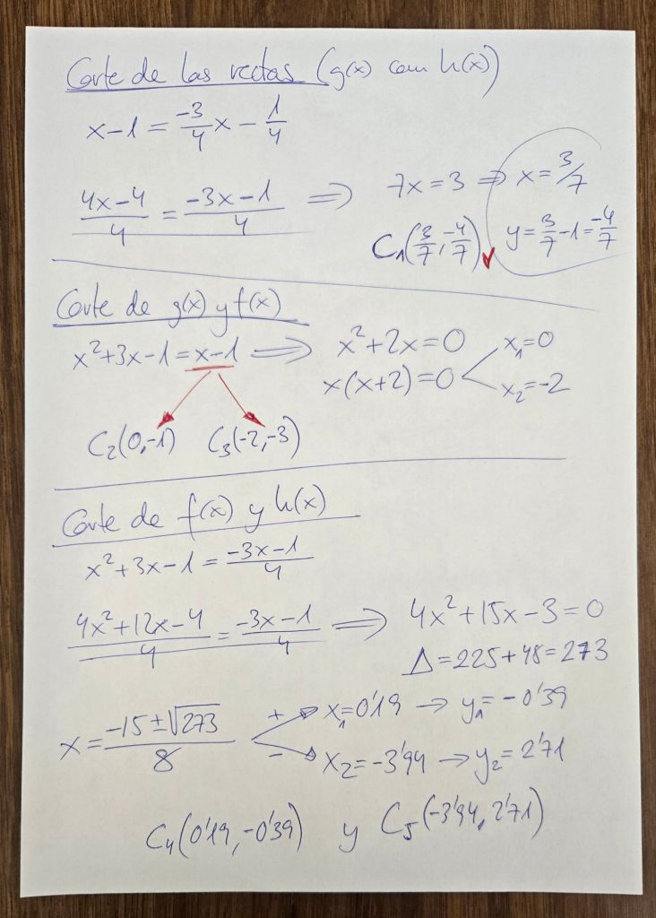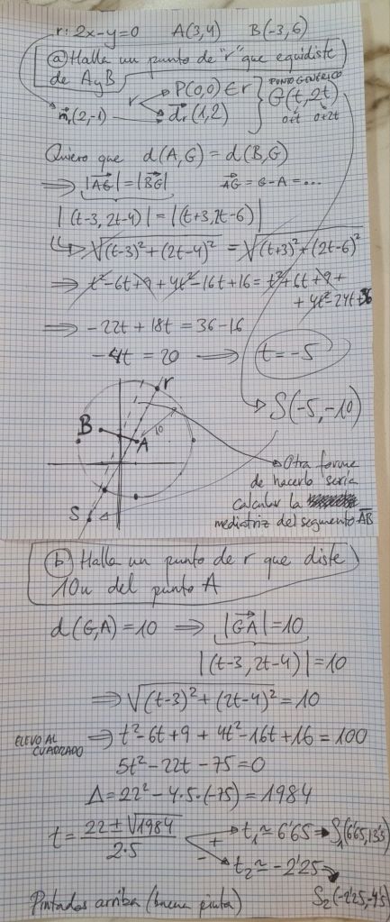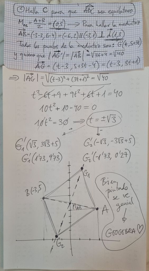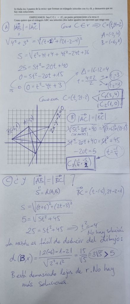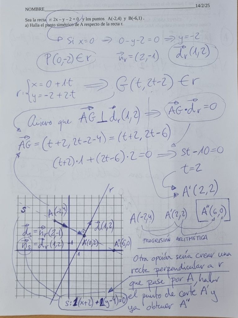 25/2/25 Examen de Geometría de Bachillerato (dos ejercicios realizados en clase, uno de ellos aparece abajo, pero con resultados bastante más sencillos)
