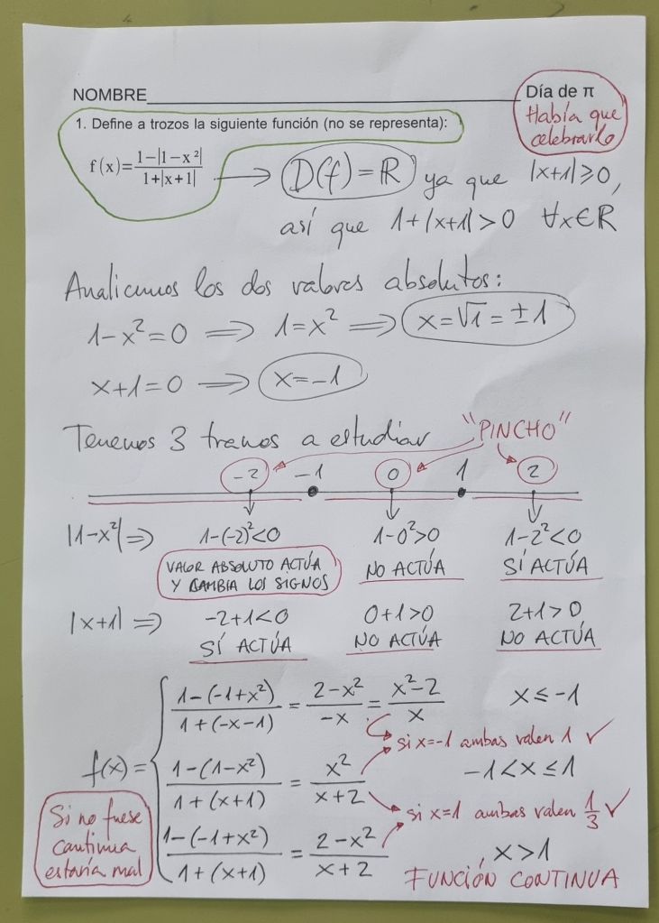 π day BACHILLERATO Tarea de control