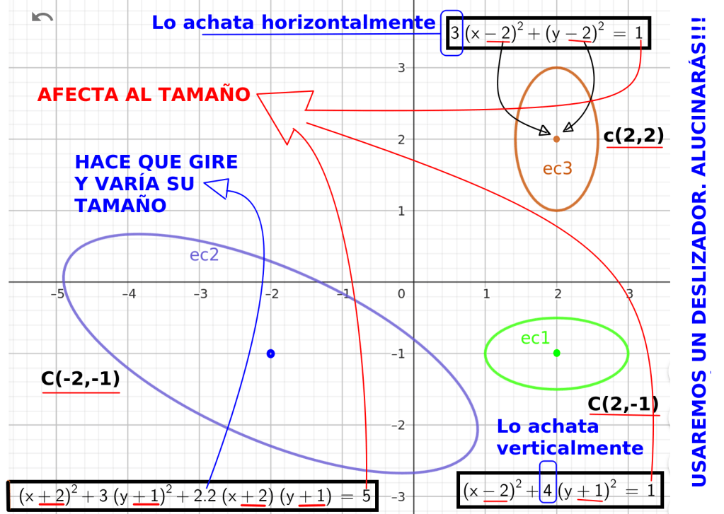 Ecuación con deslizadores: (x-a)^(2)+c (y-b)^(2)+d (x-a) (y-b)=f