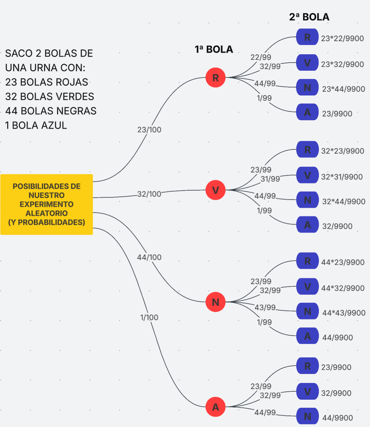 10/6. PARA TODOS: Llegamos a Probabilidad. Inicialmente, vamos a realizar todos los mismos ejercicios usando la aplicación Lucidchart. Mira mi diagrama de árbol en este ENLACE