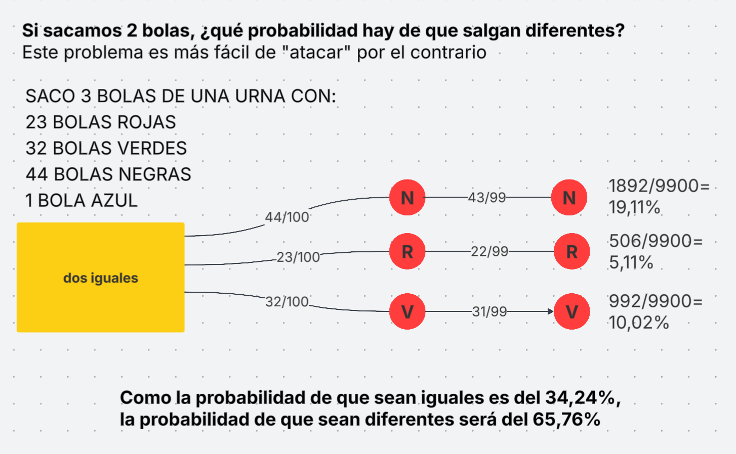 Si sacamos 2 bolas, ¿qué probabilidad hay de que salgan diferentes?