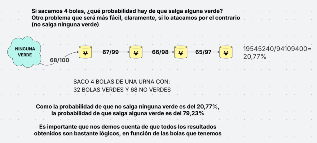 Si sacamos 4 bolas, ¿qué probabilidad hay de que salga alguna verde?